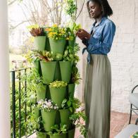 Finish the look with simple, farmhouse-chic accessories like these faux boxwood topiaries.